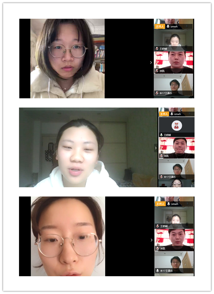 此次主题讨论围绕预备党员在新冠肺炎疫情防控工作中党员的作用发挥及中国特色社会主义制度优越性展开。2016级本科生庞慧敏同学表示:作为一名预备党员,首先应该做到不给国家添乱,按照要求居家隔离,以免感染病毒。其次,应该号召身边的亲戚朋友们勤洗手勤通风,不去人多地方聚集,尤其是要关心接触不到网络的老年人。并且,我们应该积极投身社区的志愿活动,比如路口测量体温,喷洒消毒液等,积极关注疫情地区的情况,尽自己所能捐钱捐物,帮助疫情地区尽快走出困难。